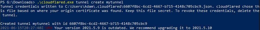 You may also see a message that cloudflared needs updating, this is fine to ignore, we’ll address this later.